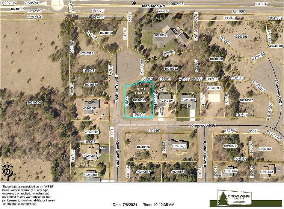 Great place to build your new home! lot is walking distance to Forestview Middle School, the Mississippi River Overlook Park, and have easy access to the Baxter trail system.