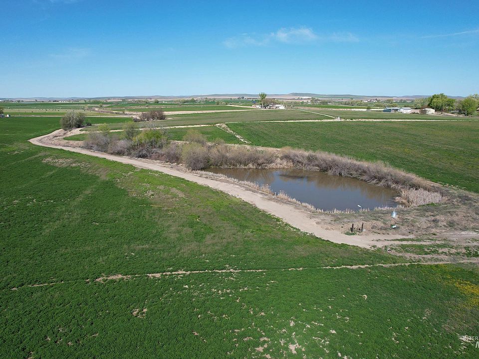 This property offers an ideal setting for a farm or ranch, complete with pivot, wheel line, and flood irrigation via by gated pipe. Currently leased for the 2025 season. Water is supplied via the Owyhee Irrigation District. A drainage ditch traverses the property, accompanied by a pond that enriches the habitat for birds and other wildlife. The gently undulating terrain not only provides stunning views but also lends distinctive character to the property.