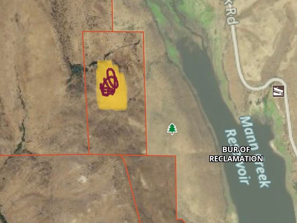 Dry grazing land in Upper Mann Creek area near the Mann Creek Reservoir. There is an 80 acre & 20 acre piece available, this is the 20 ac. Washington County historically allotted 4 building permits to use on both pieces. Buyer to verify building permits directly with the County. There is not currently any access easement to the parcels. This is a landlocked piece of property, Ideally suited for a buyer with an airplane. Buyer to find own access. Owner will not carry, this is a cash purchase.