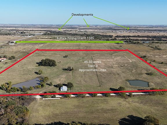 Prime 45.33-acre tract located just off Coffey Road, in close proximity to FM 1385 and Mustang Road. This property sits near the future H-E-B site and is surrounded by major residential and commercial developments. The planned realignment of FM 1385 will bring the roadway to within just a few hundred feet of the property, greatly enhancing accessibility and long-term value.