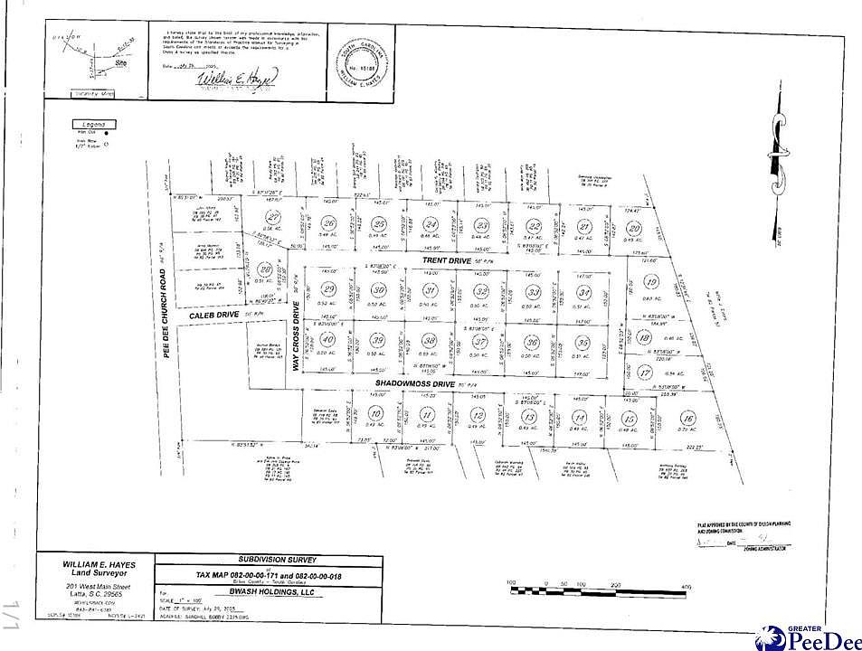Vacant 0.50-acre lots starting from just $19,900 each! These parcels offer an excellent opportunity for building your dream home or securing your next investment. The underbrush has already been cleared, saving you time and expense, and making them ready for development. Each lot is sold individually, with the option to purchase multiple or even all of them for larger projects or future holdings. With no zoning restrictions, you have the flexibility to: Build a custom site-built home Place a doublewide manufactured or modular home with brick underpin Develop for investment purposes Utilities: Electricity is available. Public water is available, and water tap fees can be added to the lot price if you prefer the seller to provide installation. Septic installation will be required. Community Features: No HOA fees. Limited community restrictions will be in place to maintain property appeal and value without the burden of excessive regulations. This is a unique opportunity to secure affordable land with versatile options for use. Whether you’re planning your forever home or looking for an income-producing property, these lots provide a great foundation for your vision. Seller financing is available. Preferred lender provides land financing and home/land packages. This tax map includes: Lot 10, Lot 29, Lot 30, Lot 39, Lot 40, Lot 25, Lot 26, Lot 27, & Lot 28 Lots 27 & 28 are priced at $22,000 Turn onto Caleb Drive off of Pee Dee Church Road. For Sale signs are visible by road with available Plat Map in box.