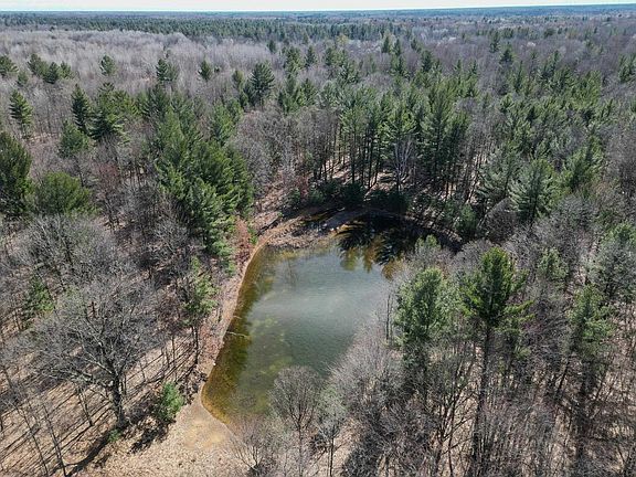 80 acres w pond. Wide trails for all your toys or for just enjoying a nice walk. Campfire site by the pond. Wildlife abundant. Beautiful place to build with no neighbors in site. Or great hunting land close to town. Near the Soaring Eagle. Schedule showings: land is being used for hunting. tree blinds do not belong to owners.