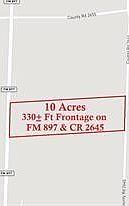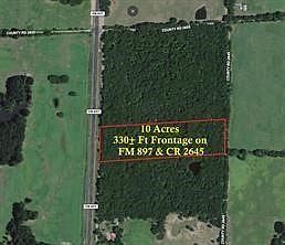 10 acres of prime land situated just North and very close to Bois D'Arc Lake on the east side of FM 897. This parcel presents an excellent opportunity for commercial purposes, including a gas station and convenient store catering to both boats and vehicles, as well as a bait tackle shop. It's proximity to 2 boat ramps and extensive road frontage on FM 897 and County Road 2645 makes it highly accessible and desirable. Water and electricity connections are available. SELLER FINANCING IS ALSO AVAILBALE AS AN OPTION WITH 25% DOWNPAYMENTS. Ask Agent for details.