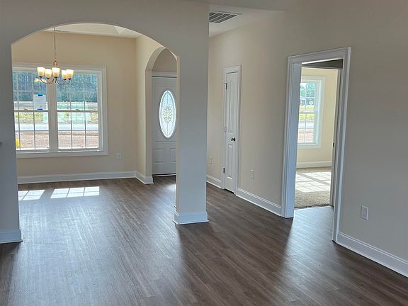 Large 1/2 acre + size lots with No HOA and No Deed Restrictions. New Homes, Builder WILL Customize. The Virginia Plan features a relaxing front porch, covered rear porch, and patio. Open floor plan, vaulted ceiling in living room. Large kitchen has solid wood cabinets with crown molding, walk in pantry, stainless steel appliances (microwave, smooth top stove, dishwasher).Formal Dining area, and a breakfast nook. Split bedrooms-Main bedroom suite has vaulted ceiling with ceiling fan, large walk-in closet. Main Bathroom has double sinks in raised vanity height, 5' walk in shower, linen closet. Guest bedrooms and bath on the opposite side of the house.Waterproof, wood-look luxury vinyl plank flooring throughout with carpet in the bedrooms. Spacious finished/painted 2 car garage with automatic door opener, pull down stairs to attic storage above. Convenient location, with easy access to HWY 22. Photos are for illustrative purposes only and may be of similar home built elsewhere, may show upgrades. Square footage is approximate and not guaranteed. Buyer is responsible for verification.