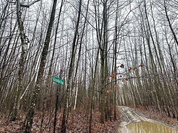 Wooded private lot with rolling land, corner lot on private roads; see county for building permit, set backs and information.