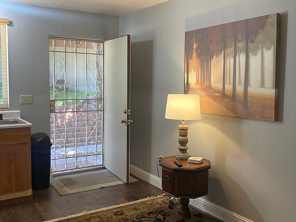 Studio unit is behind the garage which is detached from the main home and has it's own private entrance and sitting area.