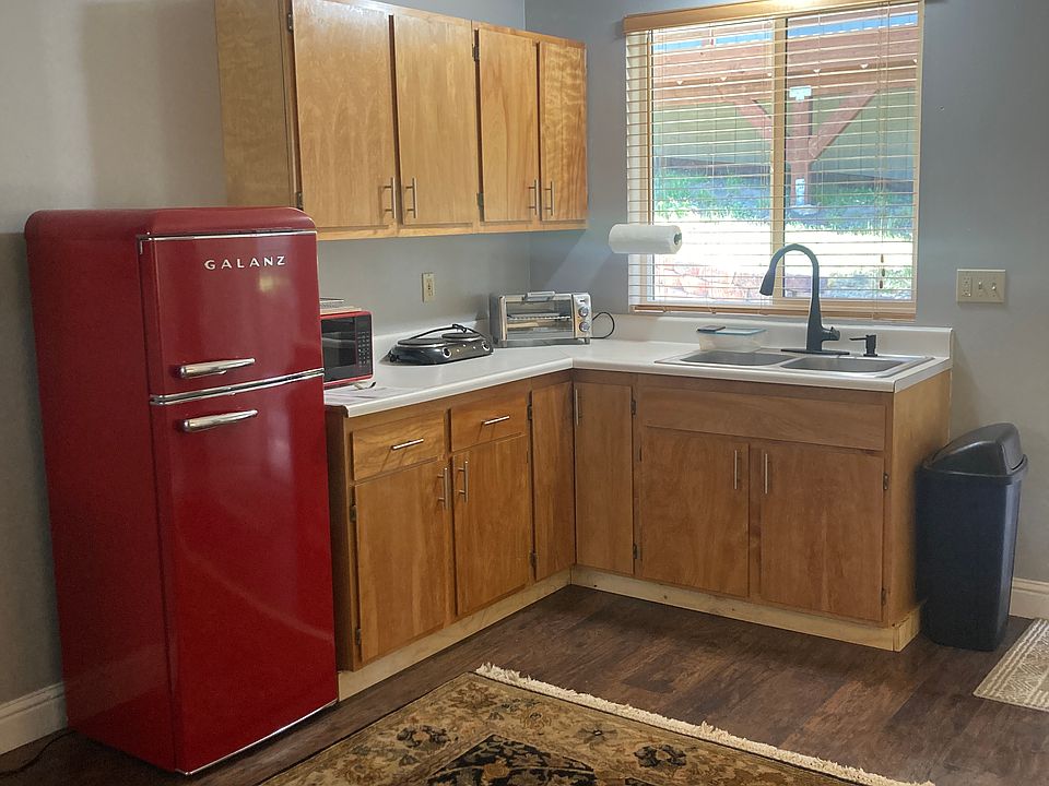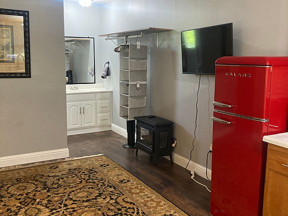 Cute little studio unit in BVS. This has all you need to make a cozy home! Kitchenette with sink, microwave, air fryer, Mini Keurig and hot plate along with a refrigerator. Good counter space. Wall mounted TV, electric heater. Dish ware, silverware, utensils and cookware provided. Some furnishings available include bed frame and futon. Full bathroom. Private entrance, small storage shed out back, with a sitting area.