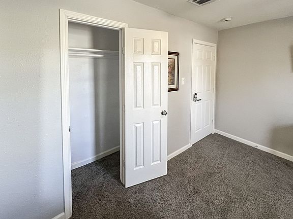 Room 3 is 9x12 and has all the amenities you need. Plush 12in hybrid mattress, under bed storage, large closet, smart TV, foldable desk with rolling chair, nightstand with lamp and outlet, full length mirror, blackout curtains, and a ceiling fan. There is plenty of room for personal items.
