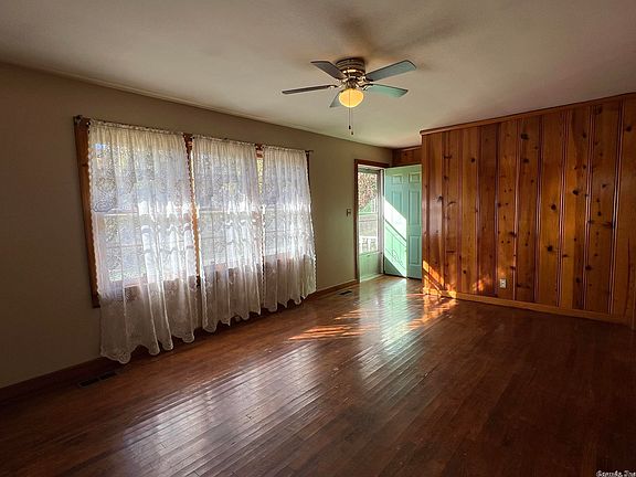 2 Bedroom 1 Bath Ranch Home on nice corner lot. Country kitchen/dining with lots of cabinet space, electric stove and SxS refrigerator. Lots of knotty pine and arched doorways throughout the home. Living room has Fireplace currently set up with electric has also been gas log also. Central Heat is propane with central AC. Sun room off dining to carport. Cedar lined closets. Tub/Shower unit in bathroom. Park like setting with mature trees and shrubbery. 14x15 Storage building/shop. Concrete circle drive