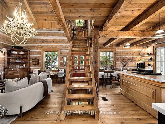 Available Dec 1 to April 30, Ski in/Ski out Blue/TSC Century old Log Cabin meets modern Luxe. Enjoy the warmth and beauty of a beautiful open concept main floor with 20' ceilings, beautiful stone fireplace, and a new chef's kitchen that is simply stunning. The upstairs suite includes a private bedroom and newly renovated bath where you can soak with a glass of wine after a day on the hill. The lower level (which is above ground) has a lovely bedroom, a family room and second bath. There is a guest house with two-bedroom and a 3 piece that is perfect for older kids or a private space for weekend visitors. And, of coarse a nice hot tub for everyday enjoyment. With views of Georgian Bay from the back deck and Blue Mountain out your front door it's simply a superb winter home.