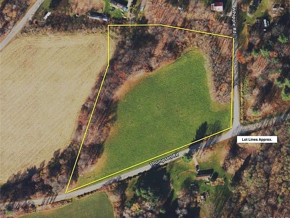 This property offers an excellent opportunity to build a home or camp with approximately 1,150 feet of road frontage on Thompson Road and Whipple Road. The land includes open areas with some wooded sections and offers views of the surrounding landscape. Electric and fiber optic services are available at the roadside.