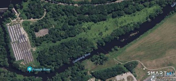 00 Thompson Road offers a picturesque 22.8 acre mixed-use commercial land opportunity located in the BDD (Business Development District zone, allowing for energy storage, agricultural operations, multi-family housing (special permit, and light manufacturing, subject to Town Planning & Zoning approval. Gentle Slopping Bordered by the French River and North Grosvenordale Pond, the site includes deeded water rights and access to municipal sewer with potential municipal water availability. Approximately 20 acres lie within the 100-year flood zone and 2-3 acres within the 500-year flood zone, with an estimated 2-5 usable acres for development. Surrounding land may be suitable for passive purposes only, such as parking, garage/storage, or recreational use. Road access will require coordination and permitting with the railroad for a crossing over the existing tracks; there is currently a shared right of way with the solar farm and a railroad light crossing in place. This property represents a unique commercial development opportunity within a natural New England setting.