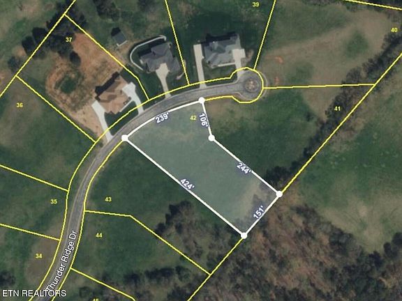 High-end gated community offers prestigious living estate home sites gracing the rolling hills in Thunder Pointe. A total of 1.7 acres , a few minute travel to the lake. Thunder Pointe offers privacy, luxury, a club house, tennis court, lake access with a community boat dock and walking trails. Just 35 min south of Knoxville for the best of shopping.