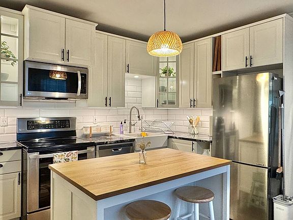 This beautifully updated 2-bedroom, 1.5-bathroom cottage offers the perfect blend of character and modern convenience. Enjoy luxurious touches like heated bathroom floors, a reverse osmosis water filter, and a ductless A/C unit. The functional floor plan features a bright, open-concept living and kitchen space, a spacious kitchen island, perfect for cooking and entertaining, a dedicated laundry room with a half bath, and two cozy bedrooms with a stylish full bath. The chef's kitchen boasts stainless steel appliances, granite countertops, and an eat-in peninsula.