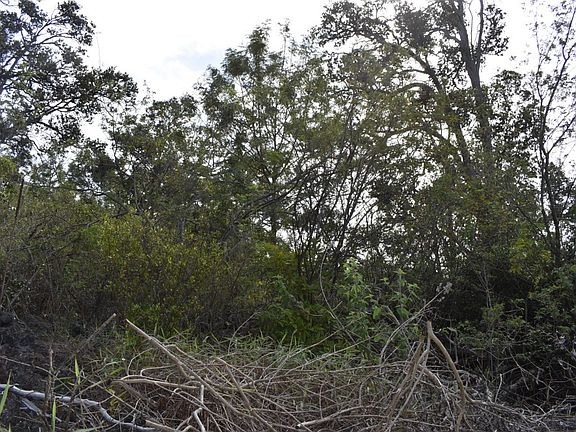Hawaiian Ocean View Estates - one wide (122 x 356 ft) lot just five blocks up from the highway! Here's a densely wooded lot with old growth ohia trees, a'ali'i, lantana, grasses and a small ocean view - probably sunsets, too. The status of conventional power will be investigated with Helco and updated here but there's possibly of a paid SSPP assessment. No seller's disclosure is available as the sellers have never seen this lot. Located across the street from 92-8577 Tiki. Lava Zone 2, Flood Zone X.