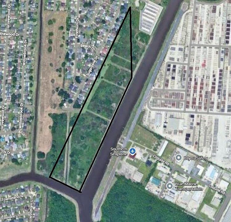 Waterfront lot located at the end of Timber Ridge, this 23+ acre property allows for endless possibilities for various developments! Allowing for multi-family housing, single family housing, and even retail/strip mall opportunities. Beginning at the end of Timber Ridge Street TRIANGULAR LOT IN SEC 69 T14S R24E - 405.65' ALONG JEFF/PLAQ LINE X 166.64' ON BAYOU FATMA X 423.02' TO