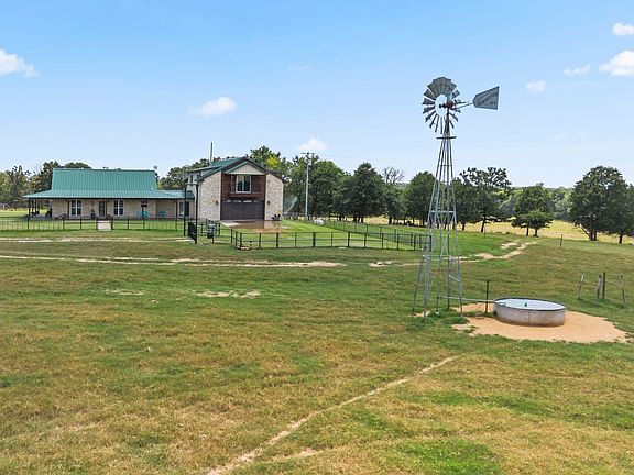 Are you looking for a ranch that's ready to go? This fully equipped property is designed to meet all your ranching needs and more, featuring: working windmill for a reliable water source, covered working pens, three feedlot areas with water, four cross fenced acres with water, five ponds, mixed Native and Bermuda grass fields, a new hydraulic squeeze chute, 6-stall horse barn, 60x60 covered arena with lights, 36x20 horse barn/shop, covered trailer storage, an above-ground fuel tank. After a long day of working cattle, retreat to your custom-built cabin-style home. This family-friendly home offers a warm and loving atmosphere, perfect for creating lasting memories. The cabin style home offers 2,190 square foot of living space featuring 4-bedrooms and 3-bathrooms. Side entry 2 car garage. Enjoy watching the sun set every evening with a refreshing glass of sweet tea on the wrap-around covered porch. Don't miss this exceptional opportunity to own this working cattle ranch that combines functionality with comfort and charm. NOTE** Apple Maps does NOT have this address. Use WAZE for directions.