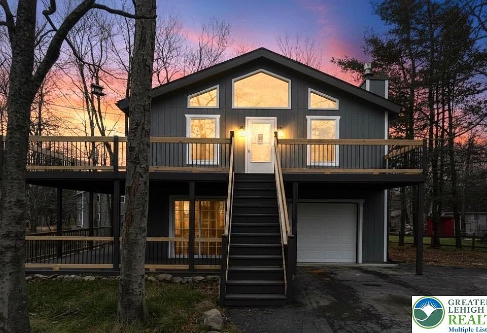 This stunning 4-bedroom, 2.5-bath retreat offers: - A main-level primary suite with a custom shower and closets - A convenient lower-level laundry room - A gourmet kitchen with natural wood countertops and brand-new appliances - A cozy gas-burning fireplace and a second modern electric fireplace with decorative granite - Brand-new windows for abundant light and breathtaking views Designed with premium materials, this home exudes elegance and sophistication. Highlights include: - 4 spacious bedrooms - 2.5 luxurious bathrooms - High-end finishes and custom closets - New appliances and windows - Warm, inviting fireplaces Discover the beauty of Pocono living in this exceptional home.