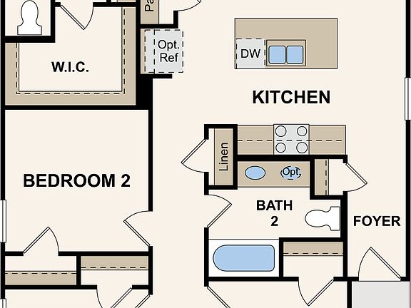 The Fresno at The Ridge at Trinity Ranch offers an inspired one-story layout with the perfect blend of versatility and comfort. As you enter from the generous front porch, the foyer leads to an open-concept kitchen?boasting a spacious center island and a charming dining area?plus a wide-open great room. You'll also appreciate three sizable secondary bedrooms-perfect for a study or guest room?sharing a full hall bathroom. In the back of the home, you'll find a private owner's suite with a roomy walk-in closet and a deluxe owner's bath with a walk-in shower. Options may include: Covered patio Dual sinks in bathrooms