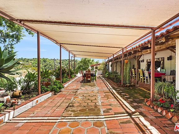 Nestled in the hills of Topanga Canyon, this magical, historic, very loved and well-maintained family compound is on the market for the first time in 26 years and provides the ultimate in privacy, beauty and peace. Consisting of two separate APNs (4438-018-024 and 4438-018-025), both properties are being sold together to total five main structures, 43 acres of oak-studded woodland with ocean views (and breezes!), a network of hiking trails, a huge pool, a suspension bridge, and more. Upon arrival, the first parcel, at 7.2 acres, holds the contemporary two-story caretaker's house. Built in 2005 and designed by noted architectural designer Charles Ward, it's a fully functioning one bedroom, two bath house and totally self-contained with its own well, utilities and address (1047 Greenleaf Canyon Rd.). There are no photographs as it is currently occupied by the caretaker but can be shown upon a second or third showing. Continue up the long driveway to the main property (1043 Greenleaf Canyon Rd.) on a 36.3 acre parcel. With one main house, two guest houses and a weaving room/art studio, the property is studded with oak trees with views down the canyon to the ocean and a sprawling hiking trail system built by trail master extraordinaire Thad Geer. The main house is an original 1934 adobe built from the land it sits on with one-bedroom plus office, one-bathroom and plenty of outdoor spaces to relax or entertain. Open the windows and feel the ocean breeze blow in. There's a covered patio/entertaining area at the front of the house with a fountain, and on the back side is a veranda that runs the length of the house with sweeping southerly views, looking down the canyon to the ocean. It has central A/C and heat. Below the main adobe is "The Cadillac House", named for the Cadillac grille above the submarine entry door. With an efficiency kitchen, a 3/4 bathroom, a deck overlooking the hills and beyond to the ocean, it's currently used as a guest house for the occasional overnight guest. Cooled and heated by a split. On a level above the main adobe is a spacious Cliff May/mid-century vibe guest house that looks down the canyon to the ocean on one side and overlooks the pool on the other side. The sexy, back-to-nature glass-walled shower is everyone's favorite. Cooled and heated by a split. Above the "mid-century" guest house is a structure that was built as the owner's weaving room with a separate, stand-alone bathroom, including a shower that can serve not only the weaving room, but act as a pool bathroom and also the bathroom most convenient to the amphitheater, where many family friend jazz musicians have performed over the years at birthday parties and weddings. Cooled and heated by a split. There is more to discover on this well-preserved, lightly-treaded, one-of-a-kind property, than can be written here. Who else can say they have a house on 43 acres of their own personal, private hiking trails with an ocean view so close to Los Angeles and in the middle of nowhere at the same time? It needs to be seen in person to fully understand how truly special this property is.