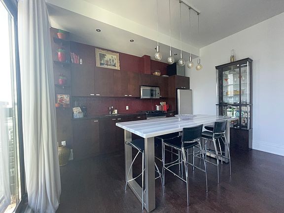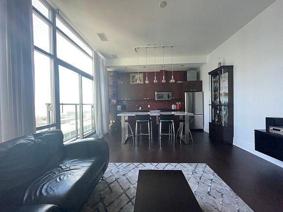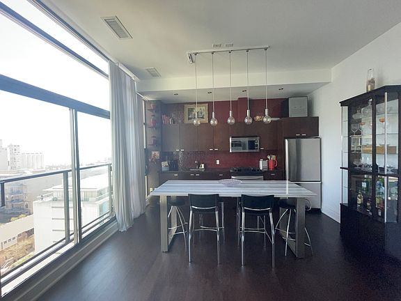 Spacious 1-bedroom loft located on the penthouse level at the iconic Tip Top Lofts. Nestled in Toronto's waterfront community, with floor to ceiling windows offering sunrise views of Lake Ontario. Features a full kitchen, in-suite laundry, and luxurious bathroom featuring a rain shower. Amenity access to a hot tub, gym, and patio with BBQ and fire pits. Enjoy the neighbourhood with steps to parks, transit, grocery, restaurants, bike paths, and airport.