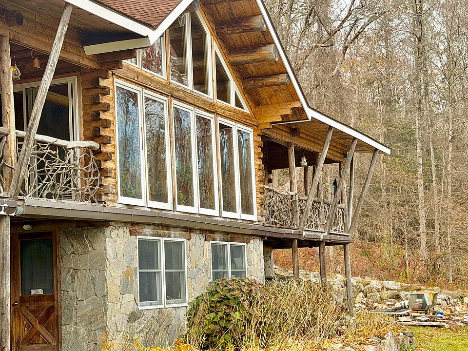 Escape to your own private lodge estate. Nestled on the Goshen line and surrounded by 14+ acres of rolling pasture, stone walls, and sky-wide views, this custom log home delivers the peace, privacy, and natural beauty that most only experience on vacation. Designed with intention, the home is constructed of individually hand-finished interior logs that create a light, clean, and welcoming atmosphere rarely seen in traditional log homes. The expansive great room features soaring windows that frame unobstructed views of the property-where it's not uncommon to watch bald eagles glide overhead or deer wander at dusk. The property includes five spring-fed ponds, open meadow, and ample space for horses, livestock, gardening, or hobby farming. With radiant heat throughout, powered by a high-efficiency wood system (with oil backup for convenience), comfort and sustainability go hand in hand. The flooring is finished in solid quartzite stone-a statement of durability and timeless natural beauty. The thoughtful layout includes 4 spacious bedrooms, including two primary suites, and a walk-out lower level with potential for a private guest suite, studio, or in-law retreat. Whether you're seeking: A private residence with room to breathe, weekend escape from the city, hobby farm, equestrian property Or a destination-style lodge to host guests and gather ...this property offers a lifestyle that is quiet, expansive, and deeply connected to nature. A rare opportunity.