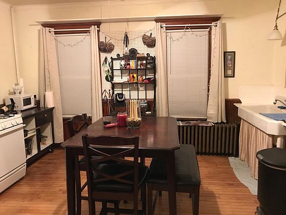 Charming first floor apartment with two bedrooms and an office space (no closet), large eat in kitchen with pantry and mudroom. Front loading stacked washer/dryer located inside unit in pantry for convenience. Attic storage makes up for lack of huge closet space and could make a great artist studio. There are closets but they are not huge by modern standards. Private small back yard and new front porch.