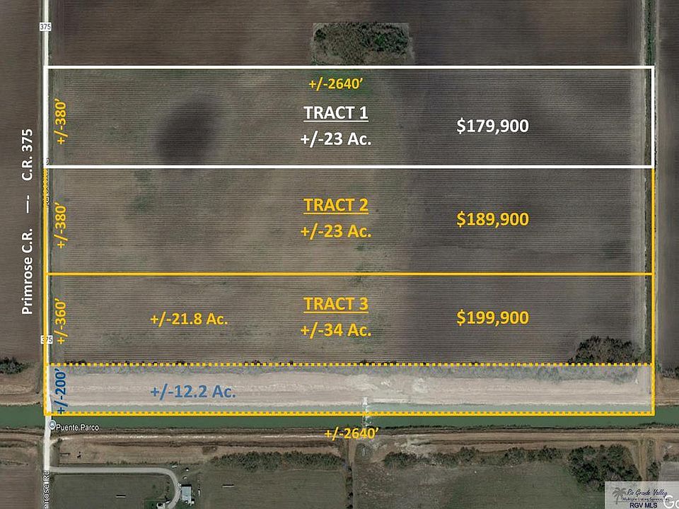 Large Rural Homesite about six miles east of Lyford in a beautiful, private area of Willacy County. Enjoy beautiful sunsets and wide-open spaces. This land has quick access to FM 498 (paved FM road) for trips to Lyford or Raymondville and the land is just a 15 min. trip down FM 507 to Harlingen. The land has access to electricity and water and the front acreage near the road is high and well suited to residential construction. This tract of land has roughly 380' of frontage on C.R. 375 (Primrose). There is a low area on this tract that would make an ideal fishing pond or stock tank. Only one house is allowed per tract and must be new construction. Bardominiums are allowed. Livestock and horses are allowed. There are two more tracts for sale by the same owner. Tract 2 is also 23 acres for $189,900. Tract 3 is 34 gross acres but about 12 acres are located in a drainage easement. The price for tract 3 is $199,900. (see photos). For a video flyover - https://youtu.be/ofph1cARjt4