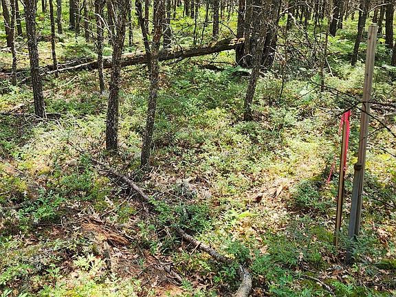 This property is a wooded parcel featuring thin tall trees. Several marker stakes and survey ribbons are present, indicating the land has been surveyed at some time. The property is located on a dead-end road offering a quiet, natural setting that maintains a rustic, undeveloped character. It appears well-suited for recreational use, or as a potential home site for those seeking a private woodland environment. property is 2 miles from ausable river public landing.