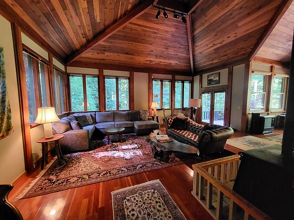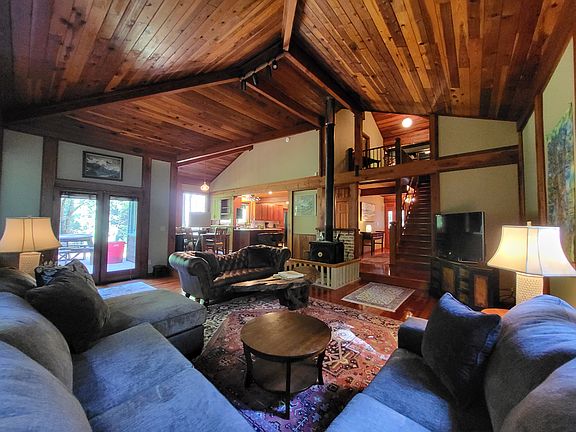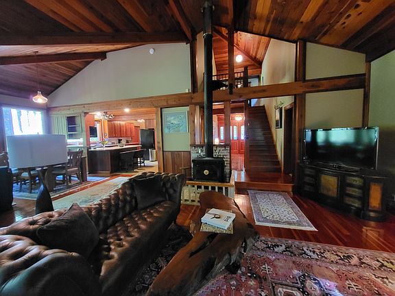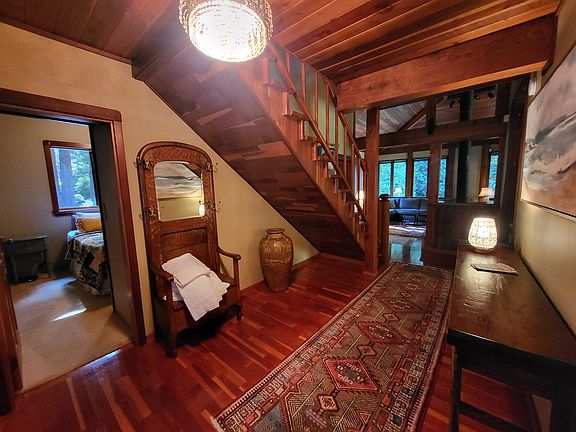 Antique furnishingsWarm custom woodworkHandcrafted cabinetryHardwood floorsWasher and dryerFully equipped kitchenExpansive wraparound redwood deck
