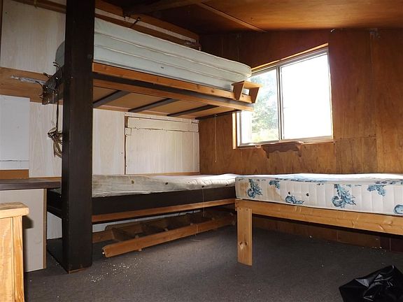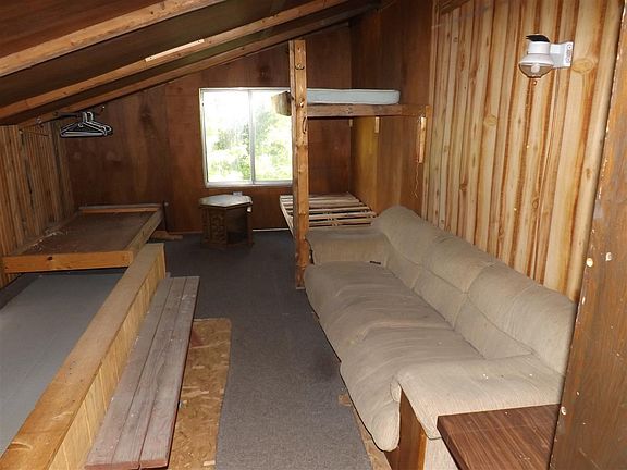 Own your own hunting camp on 20 acres! Bunk room accommodates seven people, so invite all your hunting buddies. Propane refrigerator and propane lights in buildings. Outhouse has storage area. Large 10x20 "wood fire" Sauna building with changing room, front porch deck and stocked wood shed. Acorns all over the driveway. Great deer Habitat!! NOTE: Timber rights do not convey.