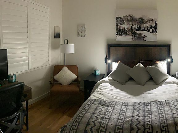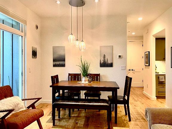 Only long term rentals 31+ nights for this 1 bedroom 1 bath, 2nd floor top unit, with beautiful covered entrances & balconies. A lovely patio with furniture to enjoy the view of amazing aspen trees, sounds of a variety of singing birds. Recently remodeled has Porcelanosa tiles, high end European style appliances, Lutron lighting systems with smart dimmers, that will suit your relaxing and entertaining mood. All utilities included. Two SMART TV's and 1 GIG of High Speed Internet included. Spacious one car garage included. High Ceilings, in-unit laundry. Spacious one car detached garage included. Quiet community. Keyless entry to unit and garage. EV Chargers on property available.