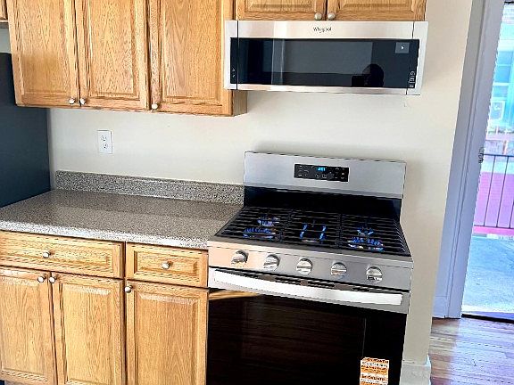 Spacious bedroomsSun-filled second-floor apartmentPrivate exterior entryEat-in kitchenGleaming hardwood floors