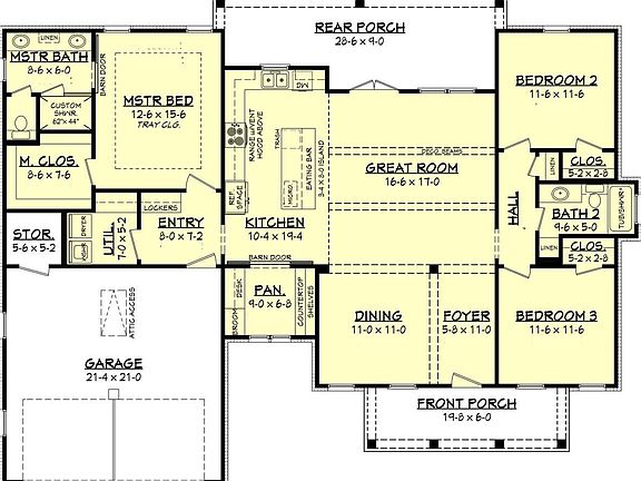 Oversized attached garageLarge porchesCarpet in the bedroomsLuxury vinyl plank floorsExpansive back patioGranite or quartz countertopsSplit bedrooms