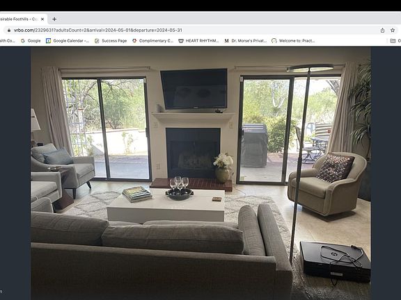 This is a remodeled, artfully furnished home in a peaceful foothills neighborhood. It features mountain views from inside and out, updated appliances and a spacious, light filled interior. It is located near the majestic Sabino Canyon Recreation Area with miles of world class hiking and bicycling. Enjoy access to trails, a community pool and jacuzzi all within walking distance. TVs are in every bedroom and the living room and owner provides You Tube TV with live streaming of most channels. Guests can use their personal subscriptions for other networks. A shaded patio adjacent to a creek offers a cool and very private outdoor living space. Grocery stores, galleries, a resort golf club, and a wide variety of dining and live music venues can be found within a short drive from the house. This is a year-round delightful place to unwind, connect with nature and explore the natural and cultural heritage of the desert Southwest. Owner pays all utilities including water, electric, Wifi, soft water, HOA fees. No pets. No smoking. Two car garage.