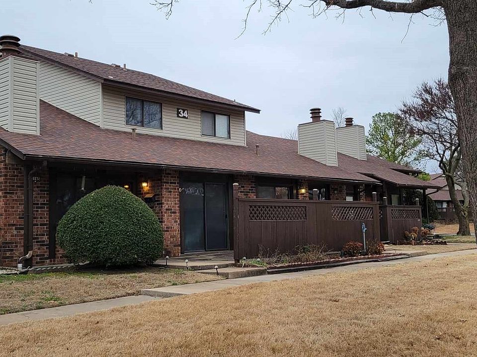 This totally remodeled condo has an open living space with vaulted ceilings, new carpet through out, updated kitchen with granite countertops. Two full baths (one up and one down). The master bedroom has a newly floored balcony and large closet space. The oversized attached 2 car garage has washer and dryer hookups and still room for a workbench. Guest parking out front and the club house and inground pool are located just across the street. Located close to all highways 44, 169 and the BA expressway. Be downtown or in Broken Arrow in 10 minutes! HOA includes water, sewer , trash and exterior maintanance.