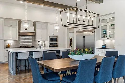 gorgeous beams/trim throughout. Impressive quartz kitchen with island, built in refrigerator, amazing working