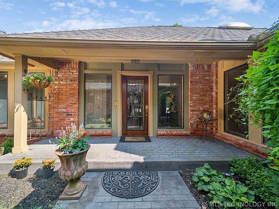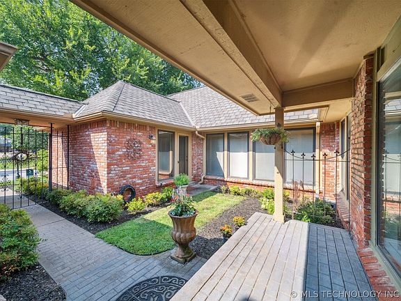 This stunning one-story executive home is located in the heart of Jenks schools, offering a perfect blend of luxury and convenience. With top-notch amenities and a prime location, this home truly has it all. Charming and unique gated courtyard Entry sets the tone! Amenities abound: Quiet Cul-de-sac location - Just under ½ acre - Gunite Pool - 3 Car Garage - Gated Front Entry Courtyard with walls of windows - 2 Fireplaces - 2 Living areas - 2 Dining areas - Master Bdrm suite with 2 closets & his/her Vanities - Anderson windows (some feature blinds within glass) - Skylights - Wetbar - Laundry Rm with sink - Lots of storage plus floored attic access - 2 backyard patios and big Screened in Porch - Mature trees and privacy landscaping - Full Brick - Full yard sprinkler and Full privacy fence with wide double gate...