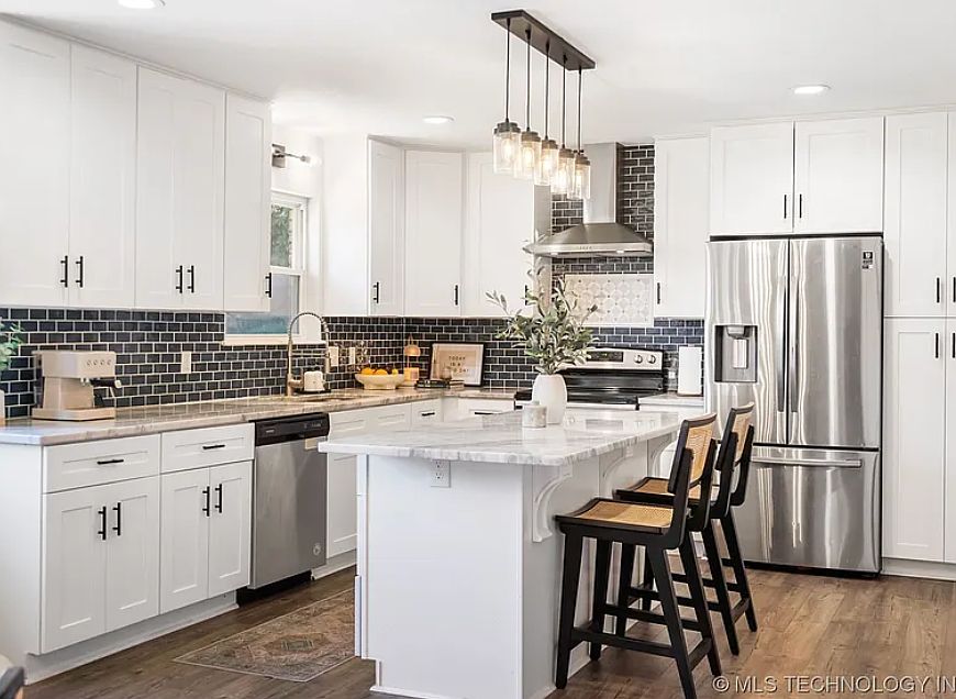 Beautifully remodeled home located in a peaceful Midtown neighborhood just off the BA Expressway and only minutes from downtown Tulsa. Enjoy modern living with quick access to dining, entertainment, and major highways in the heart of Tulsa right on 41st and Memorial. Home features open-concept layout with contemporary finishes throughout. The spacious primary suite is located on the main floor and includes a large walk-in closet and a spa-style bathroom with a rain shower. Upstairs, you'll find three additional bedrooms and bathrooms, offering plenty of space for family, guests, or home offices. The kitchen is designed for both style and function with white marble countertops, soft-close shaker cabinets, and a center island with extra storage. Bathrooms and kitchen feature soft-close cabinetry and quality finishes throughout. Large laundry room with built-in storage and closets for every day convenience. Don't miss out on this opportunity!