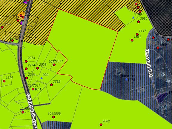 86.4 Acres. Most soil will require seasonal perc. Small area of anytime perc. This property does have a deed easement through 1784 Turkey Point Road. Do not visit the property without an appointment. The property has hunters in the woods, not safe to go without an appointment.