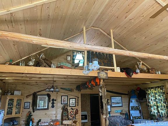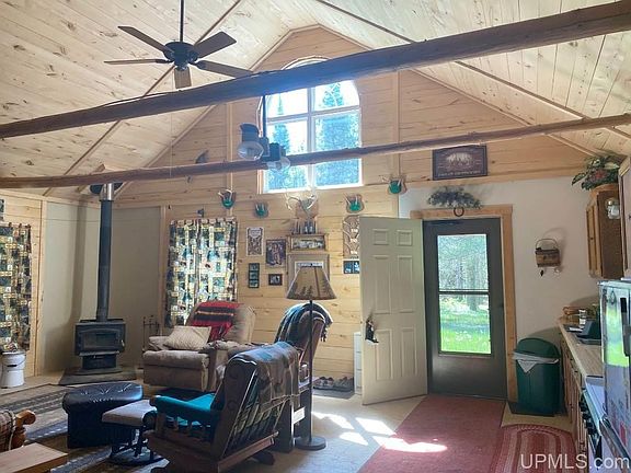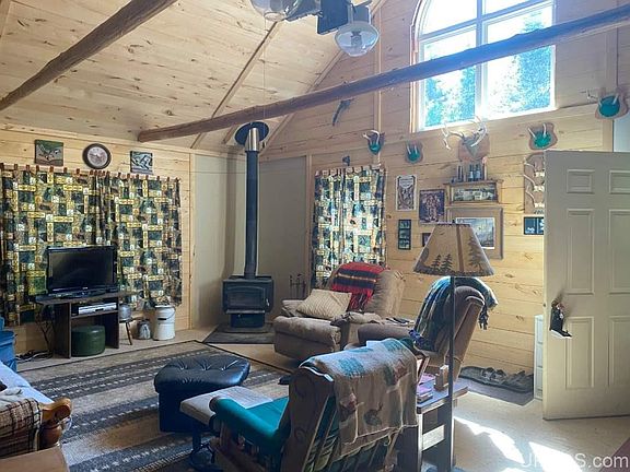 Peaceful seclusion for your home base come hunting season! This spacious, rustic 2 bedroom camp sits on a nice 37-acre parcel with a private pond. Features include vaulted ceilings, exposed beams, knotty pine walls and trim throughout, plus open loft space. A storage shed, generator, all appliances, and most furnishings are included.