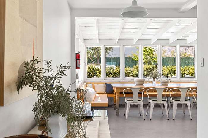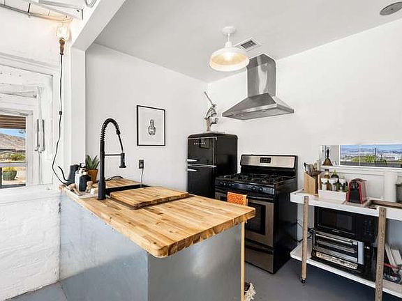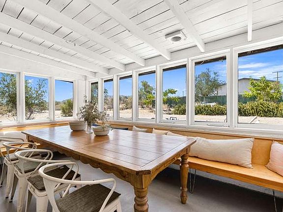 Spacious mid century custom home at the foothills of Joshua Tree National Park. Available partially furnished or unfurnished. Featured in Dwell Magazine, with vistas of the landscape, olive trees + orchard and city light views from every window. Tucked away within its own world, there are numerous dining, lounging, and cooking areas across the 3+ acre estate, located just 5 minutes from the JTNP North Entrance and downtown 29 Palms.