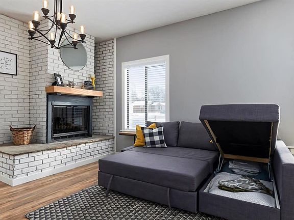 Bright and spacious living area featuring comfortable couch with chaise lounge and converts to a queen size sofa sleeper. Flat screen SMART TV, makes for a great night of lounging. Catch up on your favorite Netflix series or watch a movie on Amazon! Open seating area with large windows bring in plenty of light and provides a comfy nook for reading, playing a board game or enjoying a glass of wine.