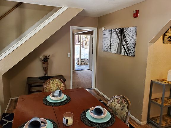 Charming two-story cabin with two upstairs bedrooms and one and half bathrooms with an option for it to come fully furnished! The kitchen includes a new stainless steel range and optional fridge. The dining room opens up nicely to the kitchen, and there's a cozy back porch. All utilities are included, even internet.