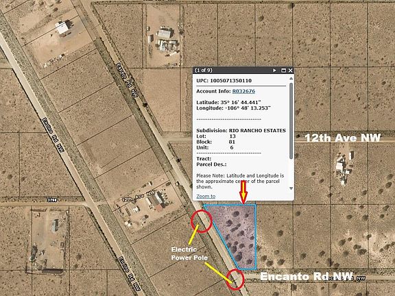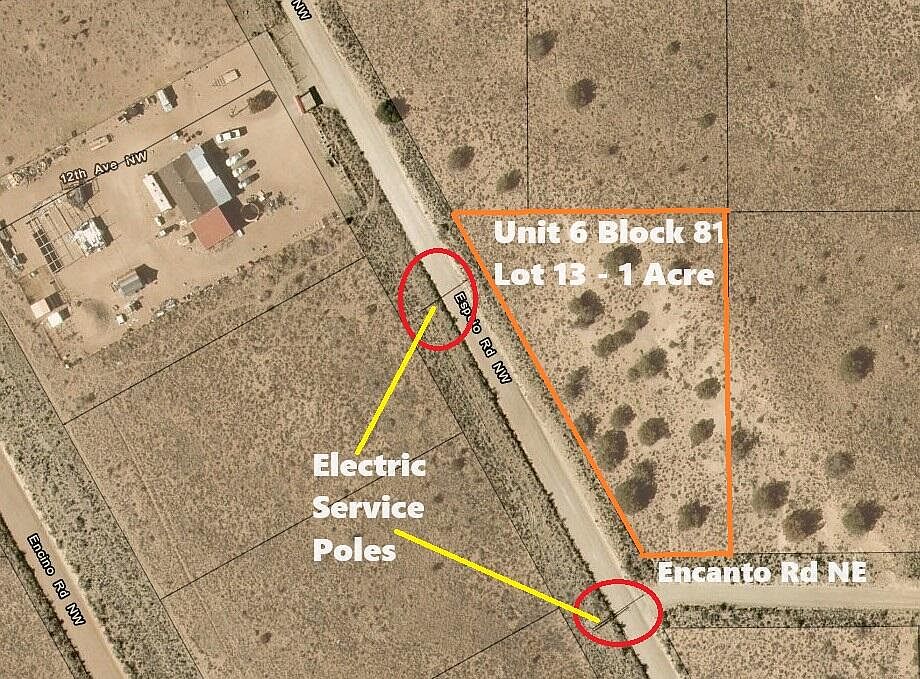 One Full Acre with Electric Power in Street. Views forever across towards Sandia Mountains. Manufactured homes OK! Call Today!! Thank you. - GPS is Latitude: 35 16' 44.441''Longitude: -106 48' 13.253''