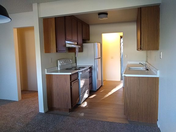 Carpet in bedroomsStreet parkingCarport parkingLaminate flooring in kitchenElectric range
