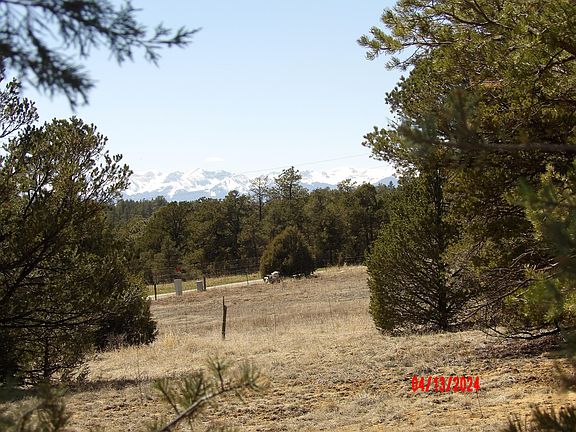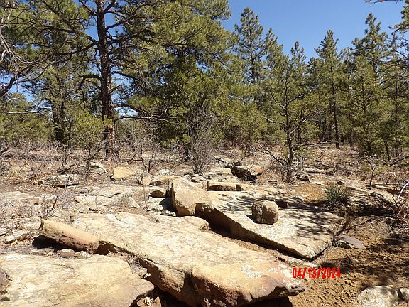 Imagine Paved County Road Frontage! Easy access in the winter months. gently sloping 9.7 acres. Facing West. More than one building site. Mixture of trees, Blue Spruce, large Ponderosa Pine, Pinon Pine, and acorn bushes. Rock-outcroppings, and Nice mountain views in some spots.