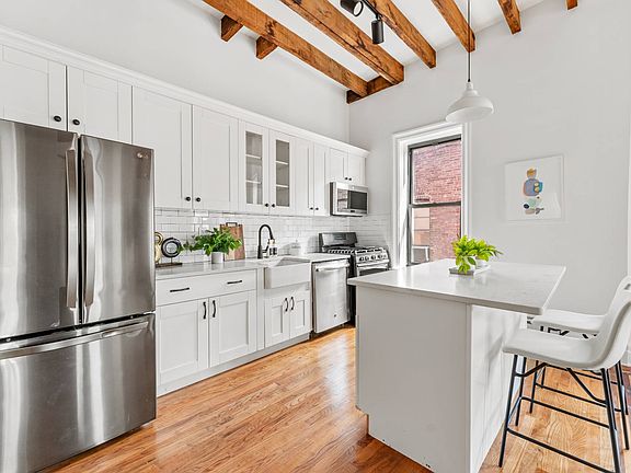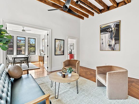 Massive two-family house with a two-car garage one block away from historic Lincoln Terrace Park. Welcome to 281 Buffalo Ave! The uniqueness of this home is the size of the house- 22.5 ft x 69 ft on a 30.35 ft x 105 ft lot. This semi-detached, two-family house offers two sprawling apartments- a four bedroom/3 bath unit and a three bedroom/3 bath unit totaling nearly 3,000 square feet plus a finished English basement. Coming home you'll enter through your lovely front porch next to your 2-car shared driveway. The spacious, light- filled first floor showcases a massive open living room with south facing windows and solid original hardwood flooring throughout. Perfectly suited for entertaining and everyday life. The kitchens are tastefully outfitted with lots of storage, stone countertops and stainless-steel appliances. Each apartment has in a washer/dryer in unit and multiple hallway closets for additional storage. All the way back down, you have the windowed English basement with 8-foot ceilings that measures over 1,500 square feet of living, a full bath, summer kitchen, separate washer/dryer, storage area and is accessed internally or from its own private entrance. This property works incredibly well as either a large single residence, as rental income -- or both- with rental income of at least $3,300 per unit! Located in an opportunity zone at Buffalo Avenue and Lincoln Road in the historic Weeksville section of Crown Heights/Bed-Stuy, this building has much to love, and the smart Buyer will understand its value for both near- and long-term investment. This home is a must see! Two pictures are virtually staged.