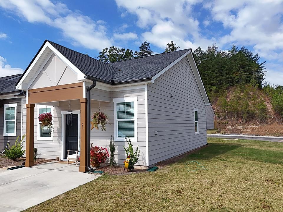2025 Build - CONVENIENT AND AFFORDABLE! 1 BR, 1 BA 1-story townhouse in a new development known as the Grove of Blue Ridge. END UNIT adjacent to common area green space. LVP flooring throughout, high ceilings, Abundant Natural Light. HUGE Kitchen w/ lots of storage. Granite c-top and 8+ ft island w/sink and D/W. Great rm has contemporary electric fireplace (warmth without the work!) Long-term rentals are allowed. Great location, close to North Carolina and Tennessee. Minutes to downtown Blue Ridge, shopping, Aska adventure area, Lake Blue Ridge, fine dining and more! HOA dues include mowing, road maintenance and trash removal. Own a piece of Blue Ridge for under $260,000.