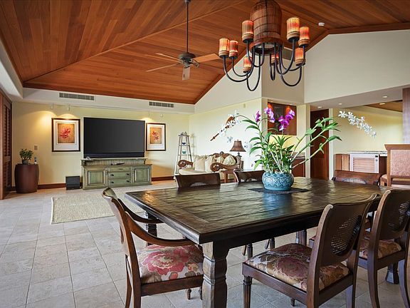 HUALALAI RESORT, Ke Alaula Villa 220B: This luxury resort offering is centrally located within the renowned Hualalai community. An artistic gem designed by architect Warren Sunnland, this split-level villa boasts great ocean views. The main floor offers seamless movement from kitchen to dining and out to a quiet lanai. Serving as a personal culinary haven, the kitchen boasts two brand-new ranges and microwave. The lower level features the primary bedroom and the second guest bedroom, along with an additional living area that flows out to a large, covered lanai and grass lawn.